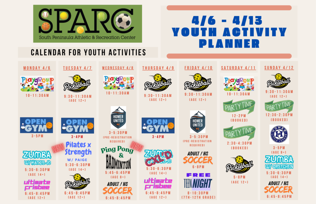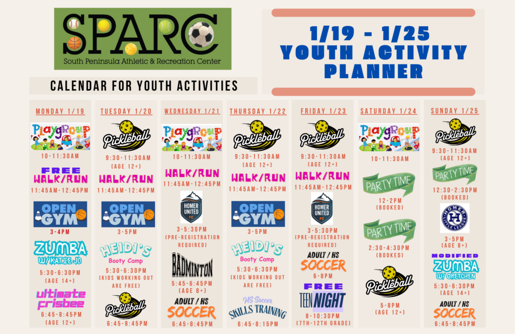 The SPARC is OPEN every day and our schedule is full of lots of activities!
