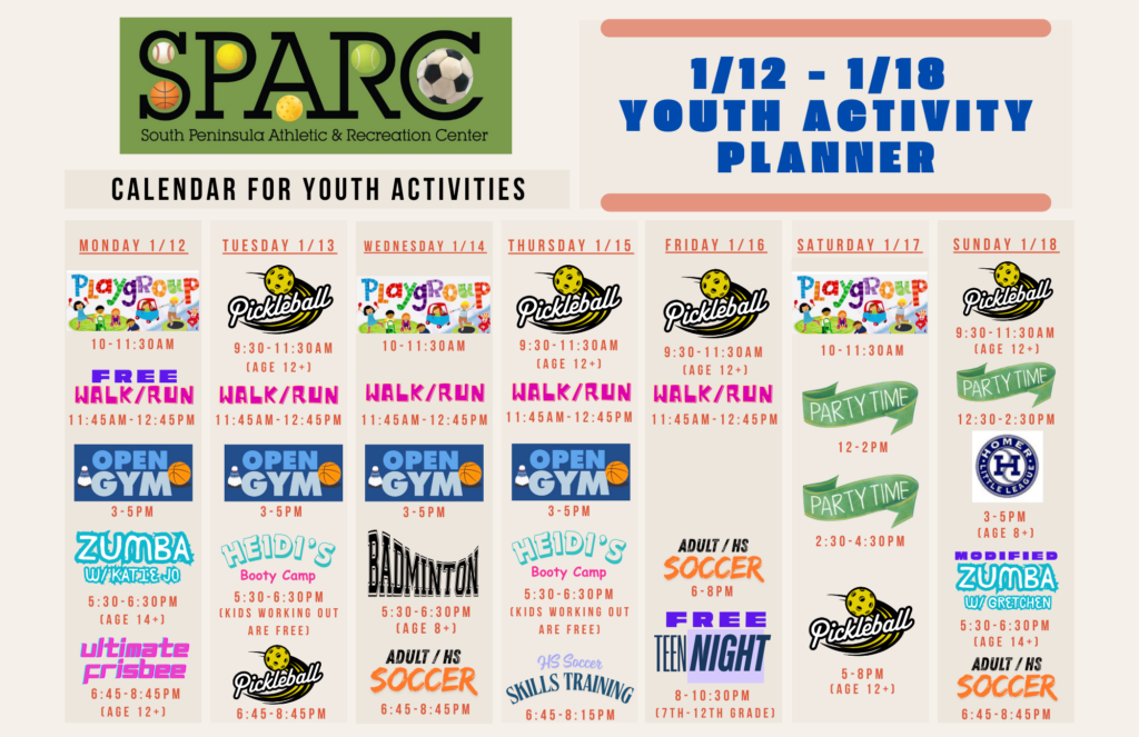 The SPARC is OPEN every day and our schedule is full of lots of activities!